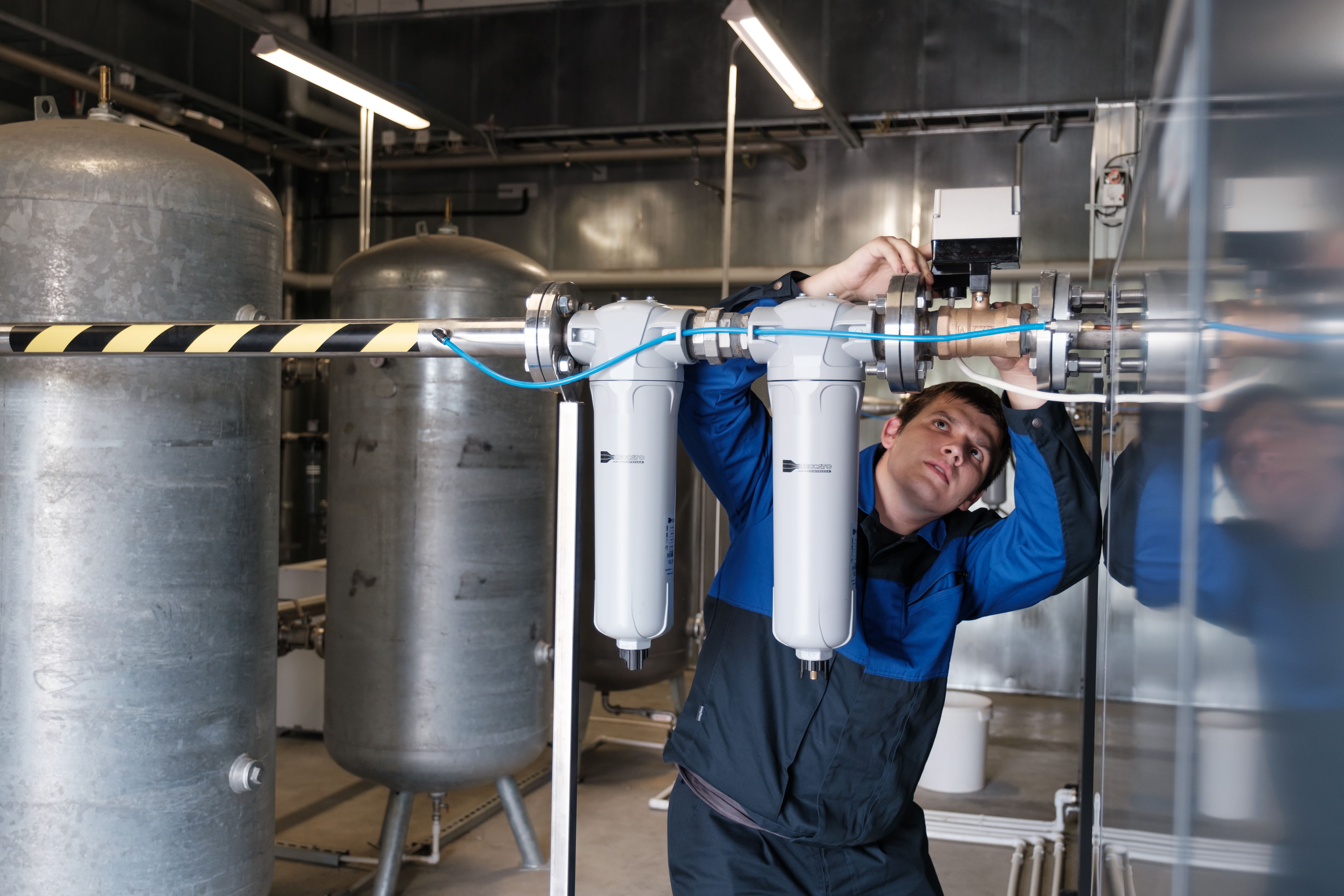 Особое внимание уделяется системе подготовки воздуха: фильтрам тонкой очистки, осушителям и ресиверам. Накопление влаги и загрязнений в этих узлах может привести к коррозии трубопроводов и повреждению подключённого оборудования. Поэтому регламент предусматривает регулярный слив конденсата и контроль работоспособности автоматических дренажных устройств.